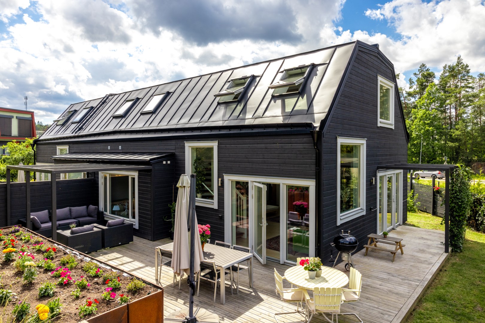 En väl genomtänkt planlösning i kombination med stora fönsterpartier och ljusa materialval skapar en svårslagen helhet.