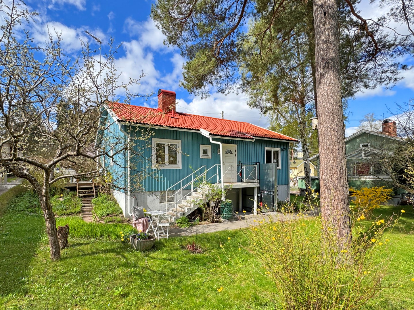 Fastigheten erbjuder även parkering för två bilar, ett separat förråd på tomten och uppvärmning via energieffektiv bergvärme. Läget är optimalt med närhet till livsmedelsbutik, skolor, förskolor och goda kommunikationer.