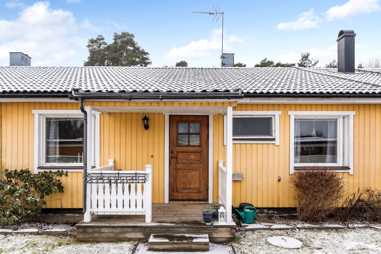 Yteffektivt radhus, belägen med ett grönt och frodigt, insynsskyddat läge. Huset är i behov av renovering.