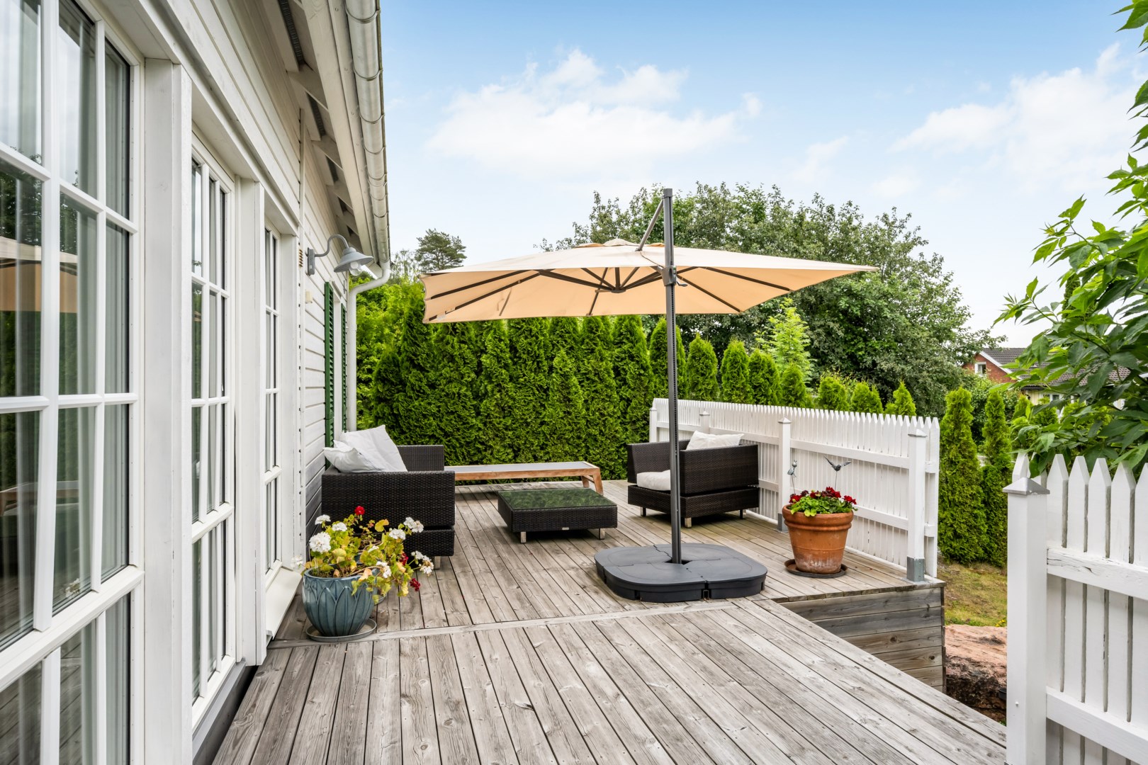 Trädgården är en riktig oas – lummig, uppvuxen och fylld av charm med fruktträd, blomstrande rabatter och flera uteplatser. En stor träaltan löper runt stora delar av huset och inbjuder till sommarens alla stunder, oavsett om du vill ha sol, skugga eller samvaro med vänner. Här finns även ett utespa för kvällsbad, en praktisk förvaringsbod, cykelparkering under tak samt två biluppställningsplatser.