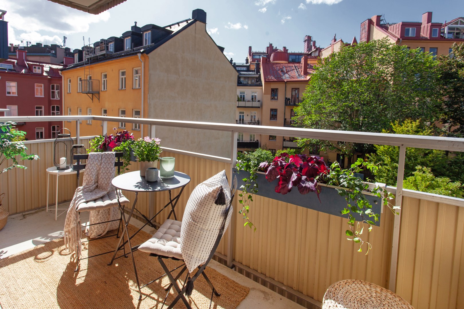 Välplanerad fyra med solig balkong i väster mot stor vacker innergård