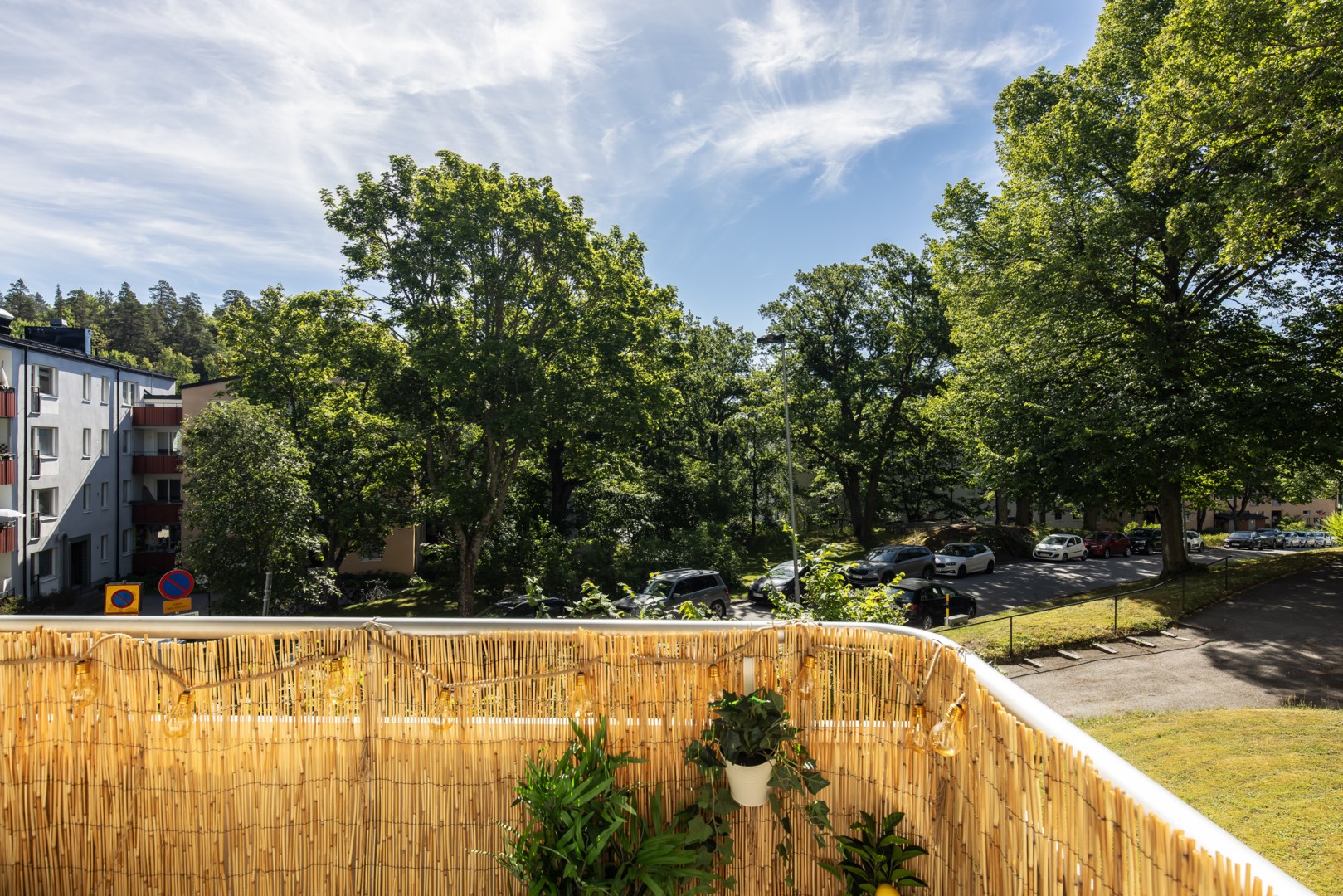 Lägenheten har en avskild sovalkov som skapar ett naturligt sovrum och frigör yta i det stora vardagsrummet – perfekt för både umgänge och avkoppling. Vardagsrummet är lättmöblerat och har utgång till en balkong med rogivande utsikt över grönska. Här kan du njuta av fridfull miljö och solen från tidig morgon ända in på eftermiddagen.
