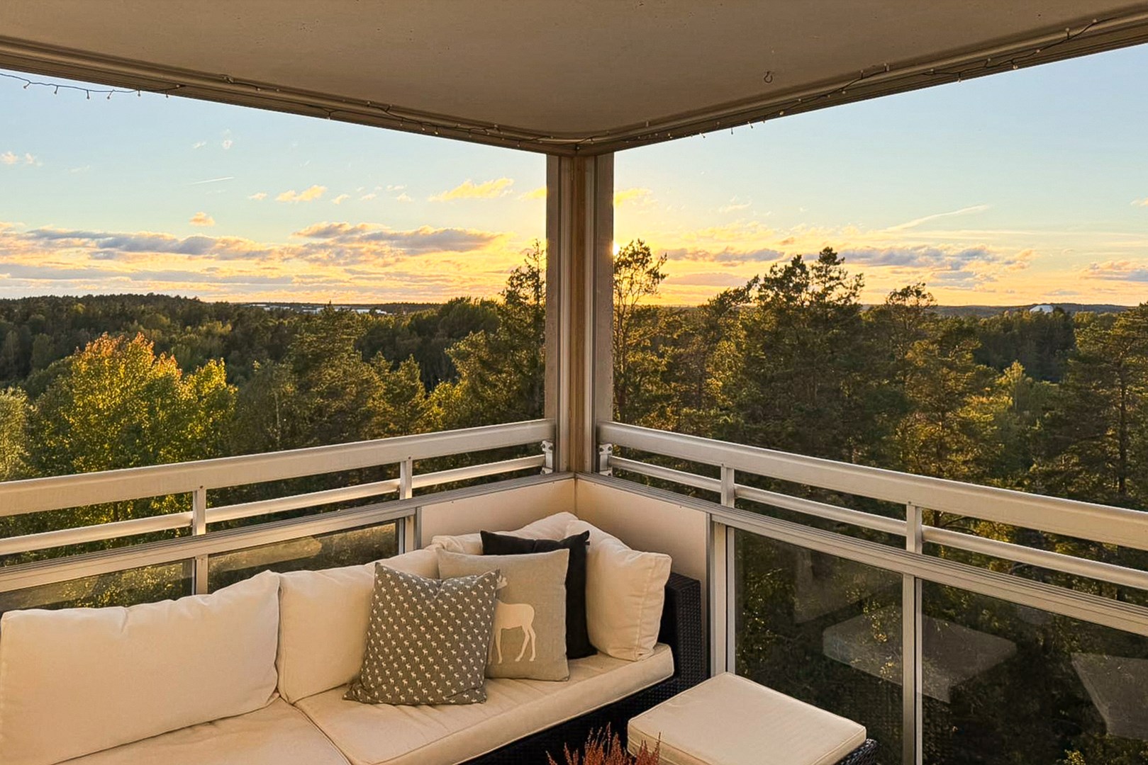 Högst upp i huset med svårslaget läge och milsvidd utsikt återfinns denna helrenoverad gavelfyra med inglasad balkong.