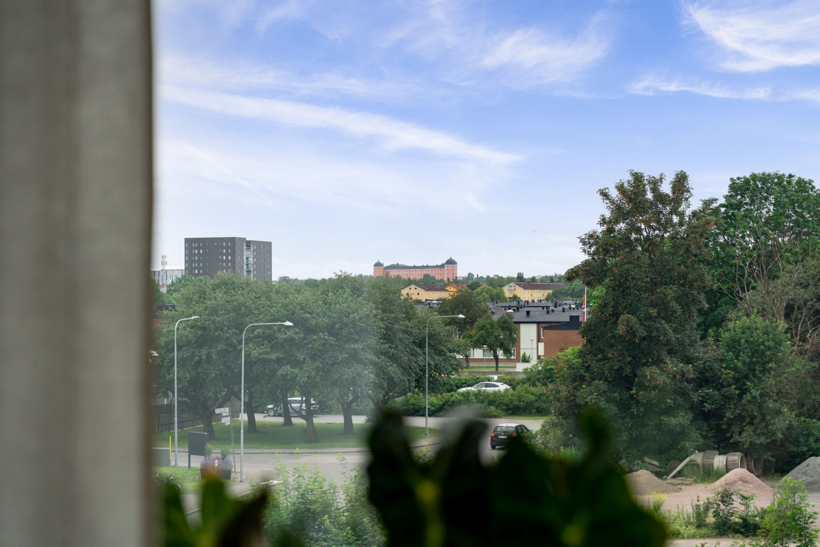 Välkommen till denna moderna och välplanerade 3:a belägen i en fastighet från 2019! Lägenheten är belägen på våning 3 av 4 och nås smidigt med hiss, perfekt för både barnfamiljen och den bekvämlighetssökande. Här erbjuds en smart och genomtänkt planlösning med otroligt mycket förvaring, bland annat två rymliga skjutdörrsgarderober i hallen samt en praktisk klädkammare. I ett av sovrummen finns ytterligare en skjutdörrsgarderob – gott om plats för att hålla ordning och reda. Vardagsrum och kök ligger i en delvis öppen planlösning, vilket skapar en social och inbjudande känsla! Från vardagsrummet njuter du av en fantastisk vy över Uppsalas siluett, med Uppsala slott i blickfånget. Det moderna badrummet är fullt utrustat med tvättmaskin, torktumlare, duschväggar i glas samt stilfullt kakel och klinker – här finns allt du behöver för en smidig vardag. Bostaden har fina ytskikt i lugna och harmoniska färgval, vilket skapar ett trivsamt hem att direkt flytta in i.
