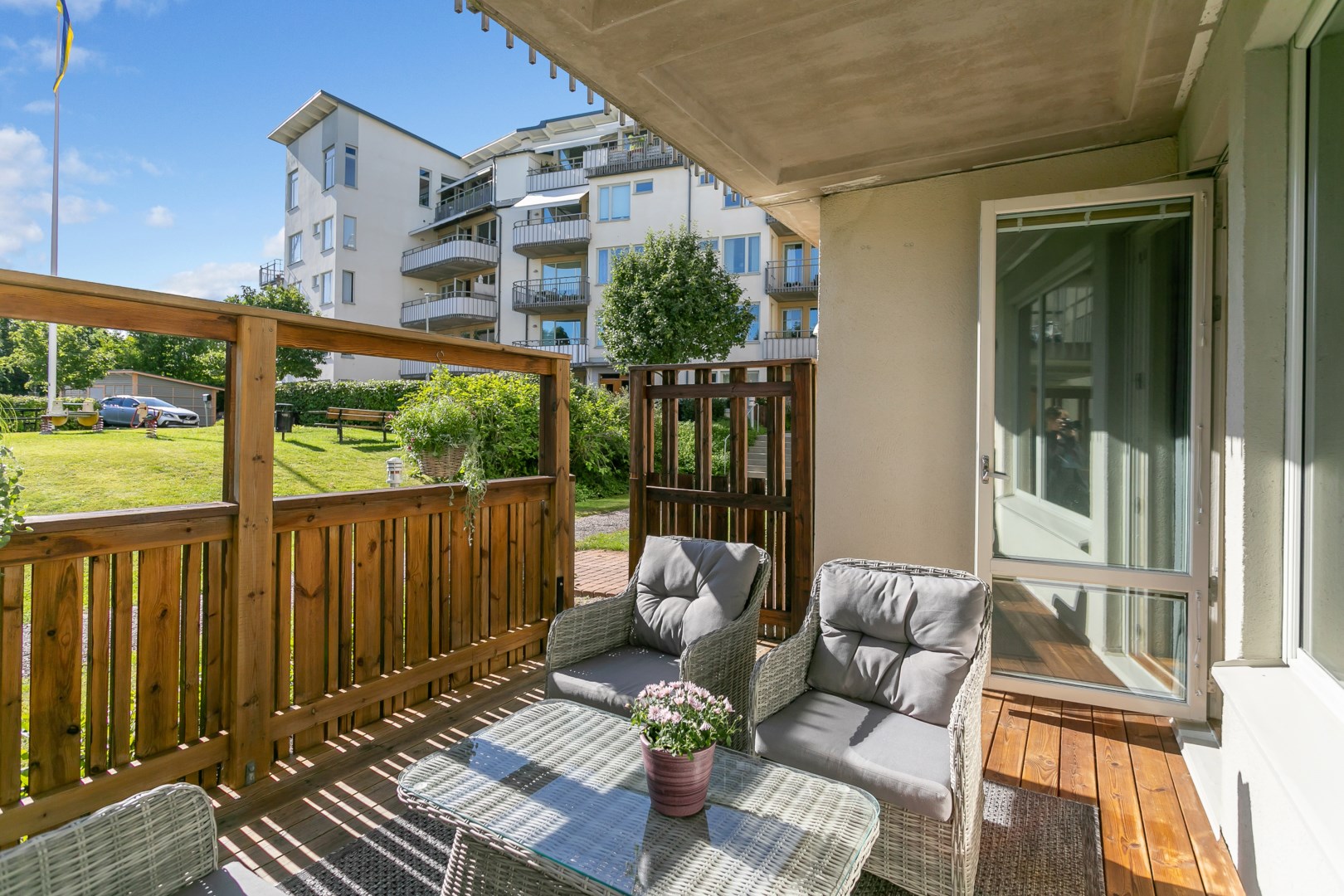 Härligt öppen och ljus lägenhet med underbar uteplats i sydvästläge. Trevligt ljust vardagsrum med kök i öppen planlösning med lättmöblerat rum som rymmer både matplats och en naturlig plats för soffa och tv. Fräscht badrum i bra storlek utrustat med tvättmaskin och torktumlare. Genomgående fina materialval i bra skick. Stabil förening med trevliga gårdar och välskötta byggnader.