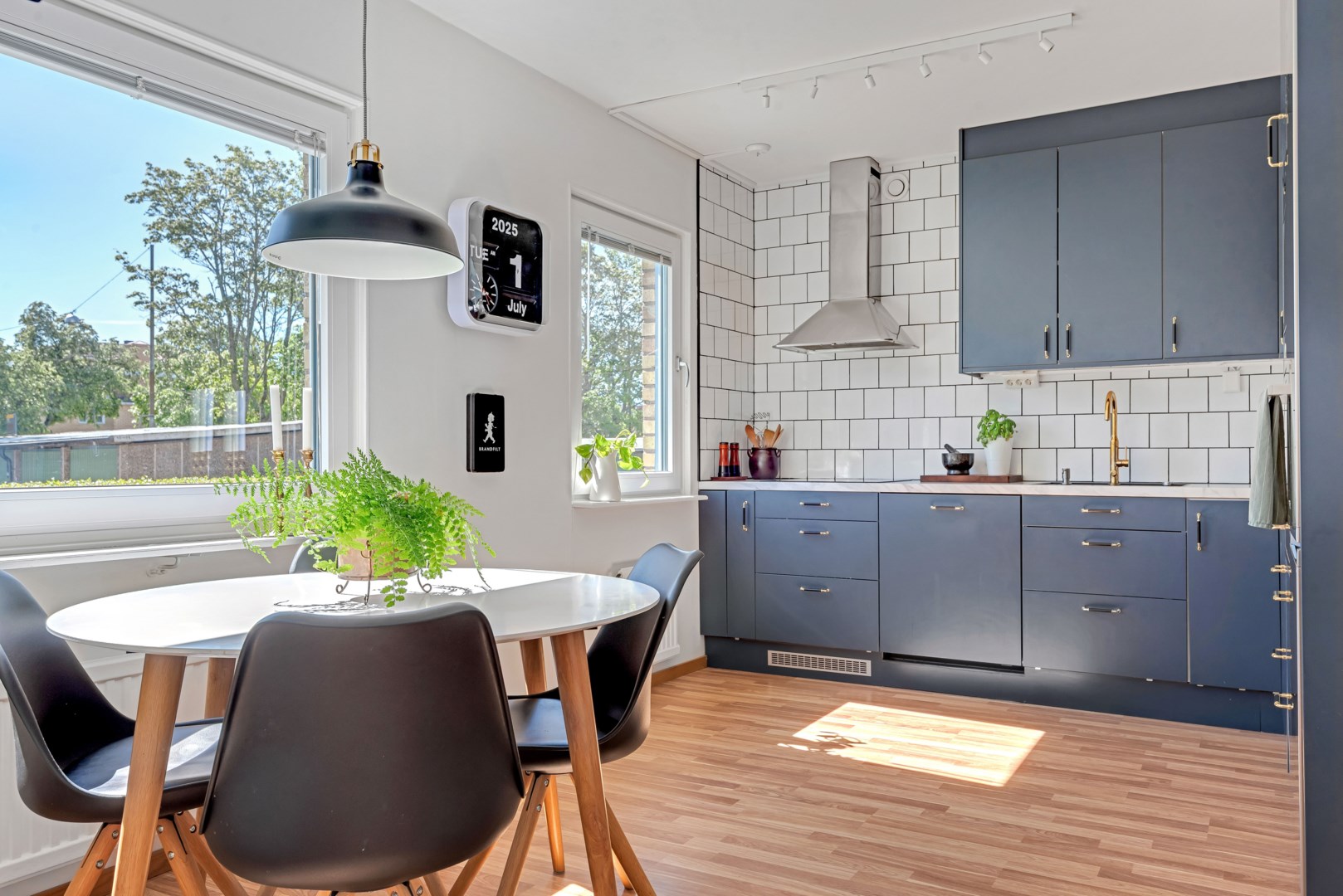 Lägenheten har genomgående fräscha ytskikt och ett smakfullt renoverat kök från Epok, där klassisk design möter modern funktionalitet. Köket är stort och rymligt med gott om arbetsytor, rikligt med förvaring och en trevlig matplats intill fönster – perfekt för både vardagsmiddagar och sociala tillfällen. Vardagsrummet är lättmöblerat och inbjudande, med direkt access till den soliga balkongen som förlänger bostadens sociala ytor.