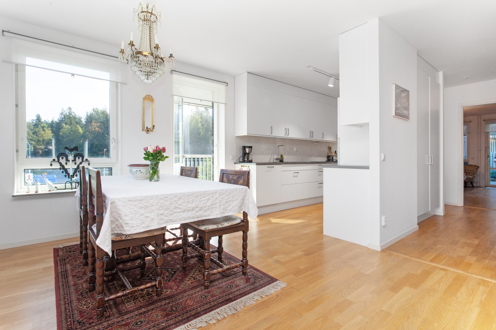 Bostaden är mycket välplanerad och erbjuder stilrena materialval och en genomtänkt planlösning. Planlösningen skapar stora sociala ytor och rymligt sovrum, beläget i ett lugnt läge mot föreningens innergård.