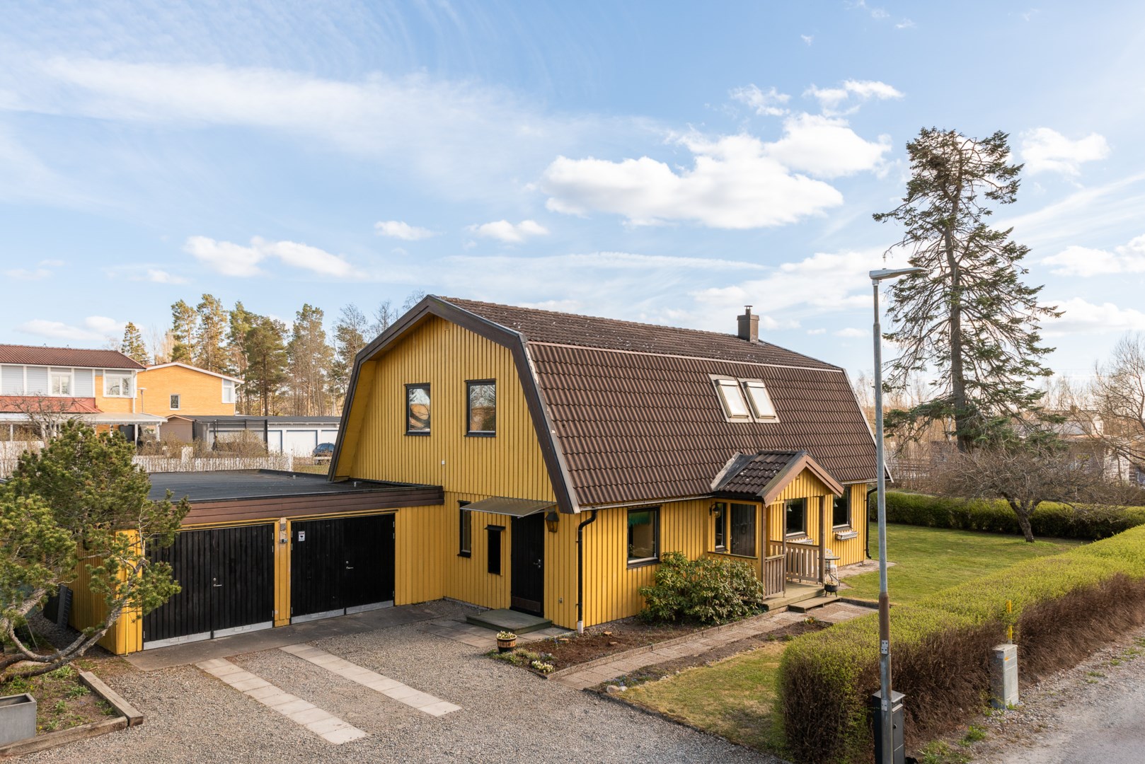 Här har du chansen att sätta din egen prägel och skapa ditt drömhem. Huset fördelar sig över två plan med vidbyggt garage. Entréplan erbjuder en välkomnande hall med plats för avhängning, ett sovrum med möjlighet att skapa ett till sovrum mellan kök och vardagsrum som idag är matrum, ett badrum, en tvättstuga med groventré, ett praktiskt kök som är utrustat med allt man behöver och ett socialt vardagsrum med eldstad och parkettgolv. Från köket nås en trevlig altan i soligt läge. Övervåningen består av ett allrum med härligt ljusinsläpp via fönsterpartier, tre tilltalande sovrum och ett badrum med bastu.