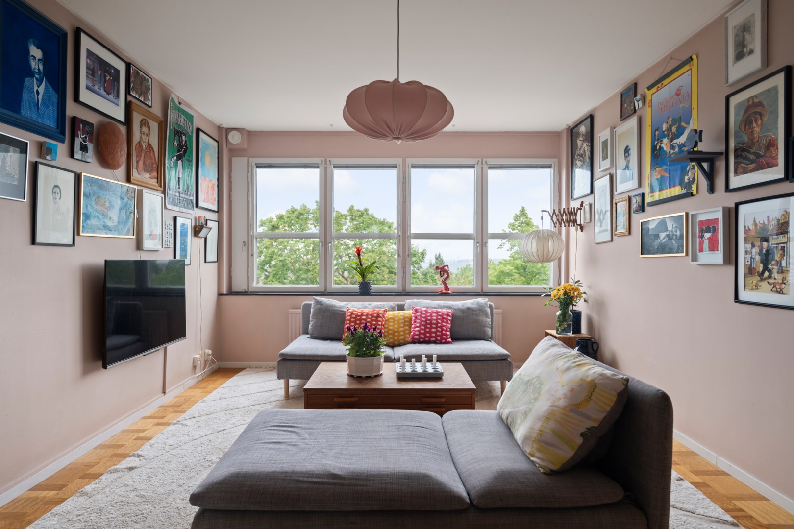 Den här lägenheten har allt som kännetecknar ett bekvämt och harmoniskt boende – ett högt och fritt läge, genomgående planlösning och ett generöst ljusflöde som ger hemmet en varm och inbjudande känsla från morgon till kväll. Lägenheten är genomgående med fönster i två väderstreck, vilket inte bara skapar ett härligt ljusinsläpp utan också ger ett naturligt flöde mellan rummen. De sociala ytorna består av ett rymligt vardagsrum med gott om plats för både soffgrupp och matsalsbord. Härifrån har man en trevlig vy mot grönska, samt ett lugnt, ostört läge tack vare lägenhetens placering. Köket erbjuder bra arbetsytor, gott om förvaring och en matsalsdel med utsikt mot den lummiga innergården. Köket är välplacerat och avskilt men ändå med naturlig kontakt med övriga bostaden – perfekt för både vardag och sociala tillställningar. Bostaden erbjuder två sovrum – ett större master bedroom med balkong och ett mindre rum som fungerar utmärkt som barnrum, gästrum eller arbetsrum. Rummen är smart planerade. Båda sovrummen erbjuder lugna insynsfria lägen. Bostaden är registrerad som en 2:a men i dagsläget nyttjas som en 3:a.