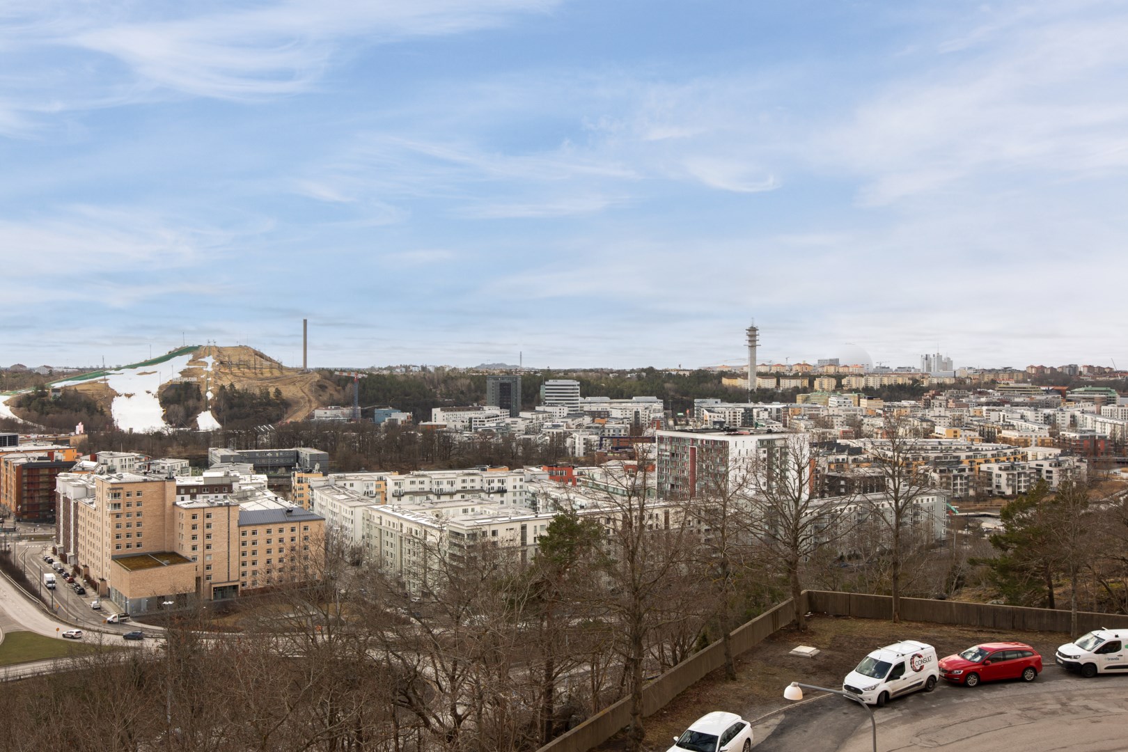 Väldisponerad fyrarummare med högt läge och fantastisk utsikt över Hammarbybacken, Söderort och Globen. Här ges en fin möjlighet att sätta sin egen prägel och skapa ett hem helt efter egen smak och stil. Det generösa vardagsrummet erbjuder gott om plats för umgänge och leder vidare ut till en inglasad balkong med härlig vy. Köket är trivsamt med plats för matbord vid fönster. Tre sovrum i bra storlek som skapar plats för familj, gästrum eller hemmakontor. Välkomnande hall med god förvaring i garderober och klädkammare. Badrum utrustat med badkar, separat gäst-WC samt en praktisk tvättstuga. Föreningen erbjuder faciliteter som garage, tvättstuga, cykelrum, miljörum och barnvagnsrum. Här bor du på vackra Henriksdalsberget med närhet till promenadstråk och ett litet centrum med all nödvändig service. Utmärkta kommunikationer med flera busslinjer tar dig snabbt till Slussen, Tanto och Nacka sjukhus.