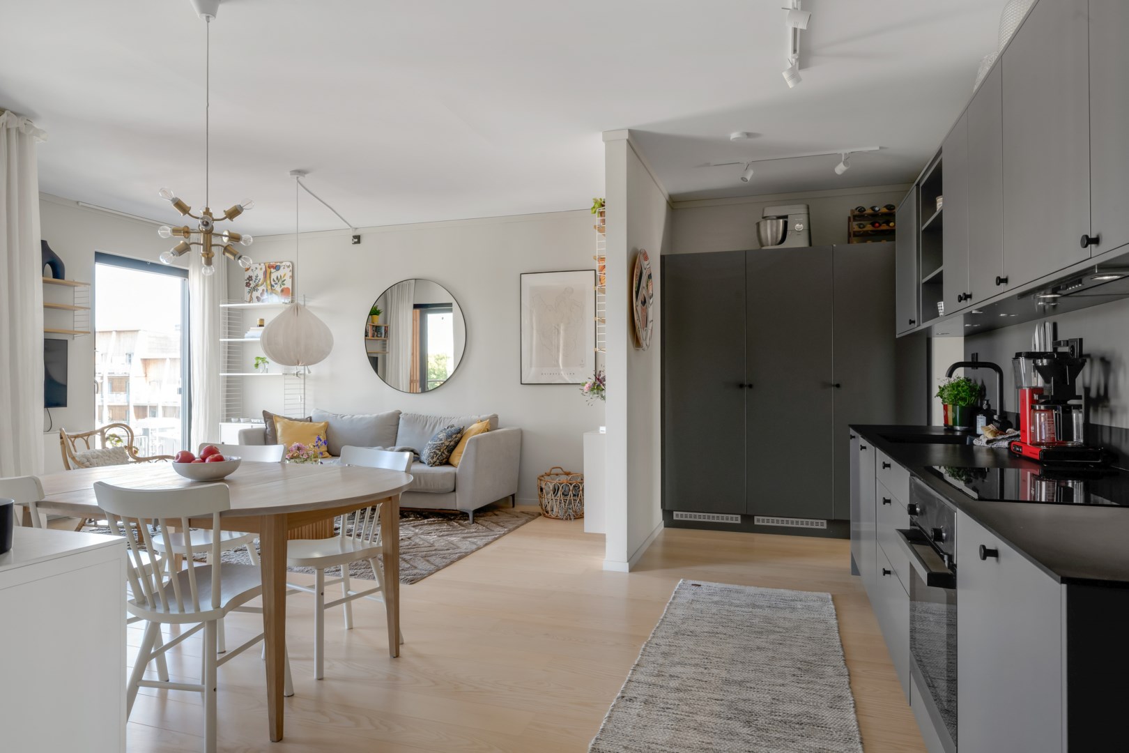 Planlösningen erbjuder hall med plats för skor och ytterkläder. Ett fullt utrustat kök i öppen planlösning mot vardagsrummet – perfekt för sociala middagar och umgänge. Två generösa sovrum i lugnt läge mot innergården. Ett flexibelt arbetsrum samt två badrum varav det ena med tvättmaskin och torktumlare. Från vardagsrummet når du den ena balkongen och från sovrummet den andra, båda med härlig rymd och ljus.