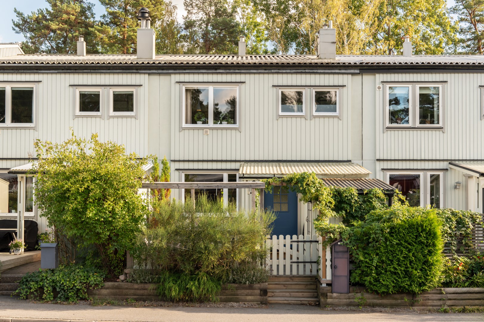 Radhusidyll med hav, skog och stad runt hörnet