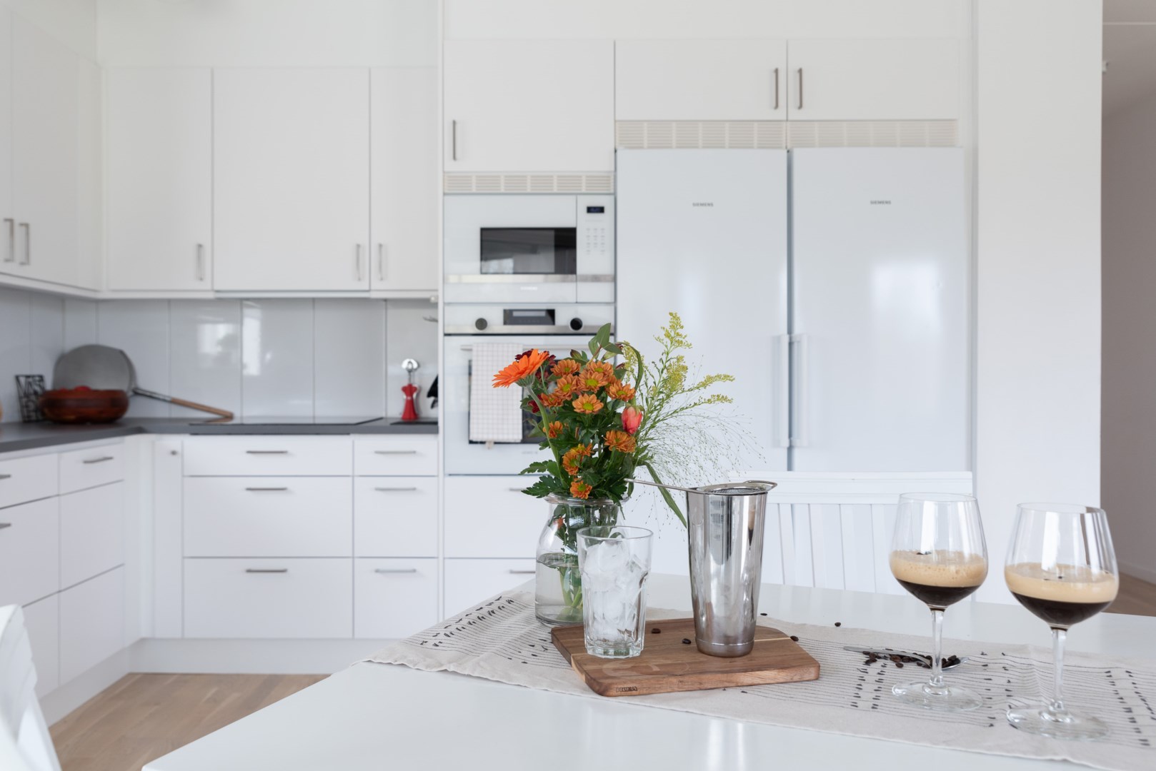 Parkettgolv, fräscha ytskikt och ett härligt ljusinsläpp är genomgående i hela bostaden. Fördelar sig över en inbjudande hall med klinkergolv och förvaring via garderob, två rogivande och rymliga sovrum med garderober, ett fräscht och helkaklat badrum med tvättmaskin, torktumlare och golvvärme och sist men inte minst sociala ytor som består av kök och vardagsrum i öppen planlösning samt med utgång till en magisk och inglasad balkong med utsikt mot omgivande grönområden och skog. Till lägenheten hör ett förråd om ca 3kvm.