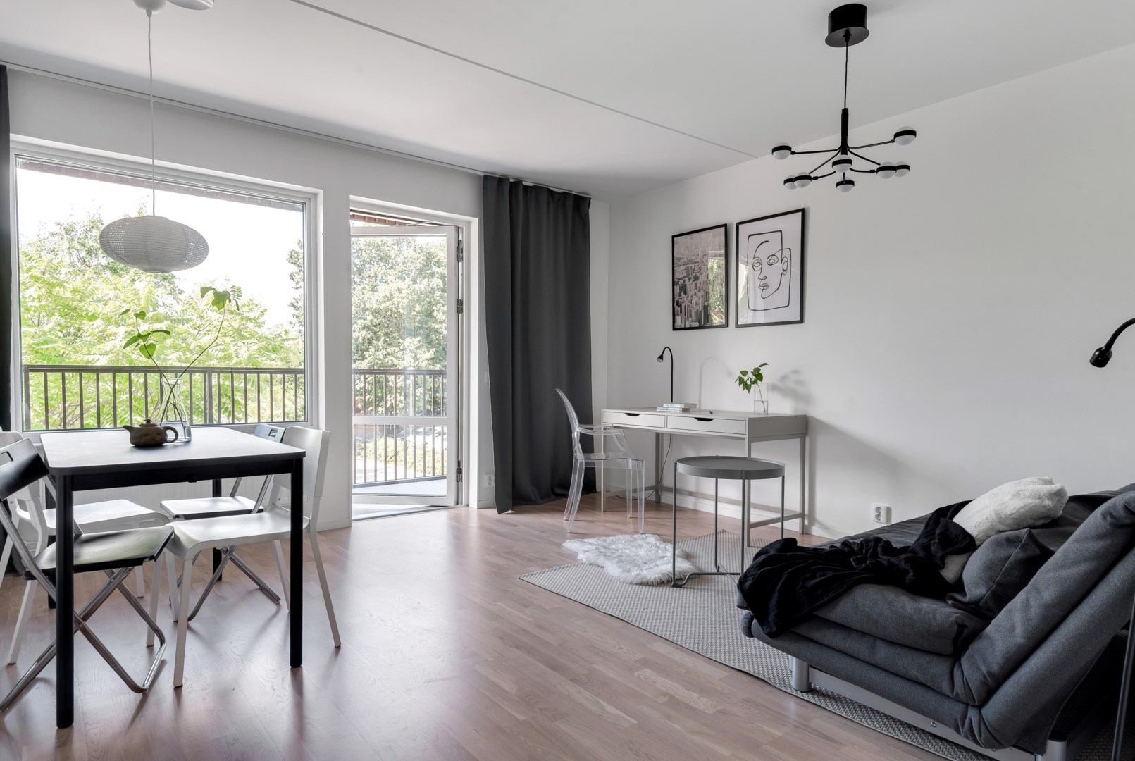 Från vardagsrummet når du bostadens balkong i nordvästläge. Här finns plats för både en soffgrupp och ett mindre bord, en idealisk plats att njuta av eftermiddags- och kvällssolen. Lugnt och harmoniskt sovrum mot innegården, ljusa vägar och platsbyggd garderob. Det väl tilltagna badrummet är helkaklat i tidlös färgsättning med vitt kakel och mörkare klinker och är utrustat med spegelskåp med belysning, kommod samt en praktisk kombimaskin för tvätt och tork. En bostad som kombinerar modern design med smart planlösning – redo för dig att flytta in och trivas från första stund.