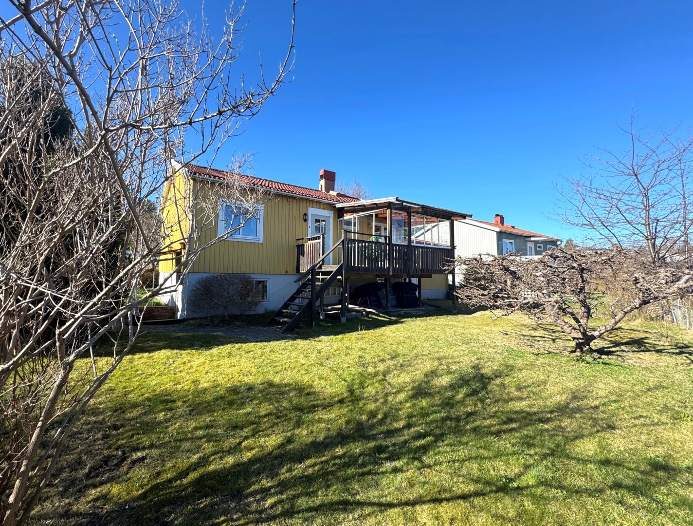 Den trivsamt inredda källarvåningen med egen entré bjuder på två fina sovrum, en möblerbar hall, helkaklad och kombinerad bad/tvättstuga samt ett arbetsrum. Det finns även gott om garderober för förvaring. Friköpt och plan trädgårdstomt med äppelträd och en högt belägen, inglasad altan med praktisk in-/utgång till köket. Intill huset hittar du det rymliga och isolerade garaget med tak upp till nock som ger gott om utrymme för både bil, verkstad och förvaring. Bergvärmepump är installerad och nyligen servad!