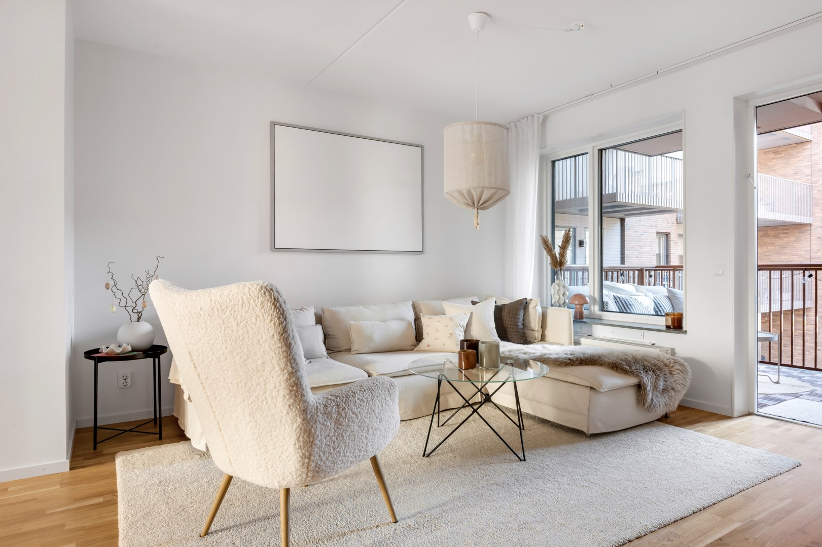 Planlösningen är genomtänkt och erbjuder ett trivsamt sovrum med bra förvaring, ett modernt och fräscht badrum med kombinerad tvättmaskin och torktumlare samt luftiga sällskapsytor där kök och vardagsrum samspelar naturligt. Den öppna planlösningen gör bostaden både lätt att möblera och enkel att trivas i, samtidigt som balkongen blir en naturlig förlängning av hemmet under årets varmare månader.