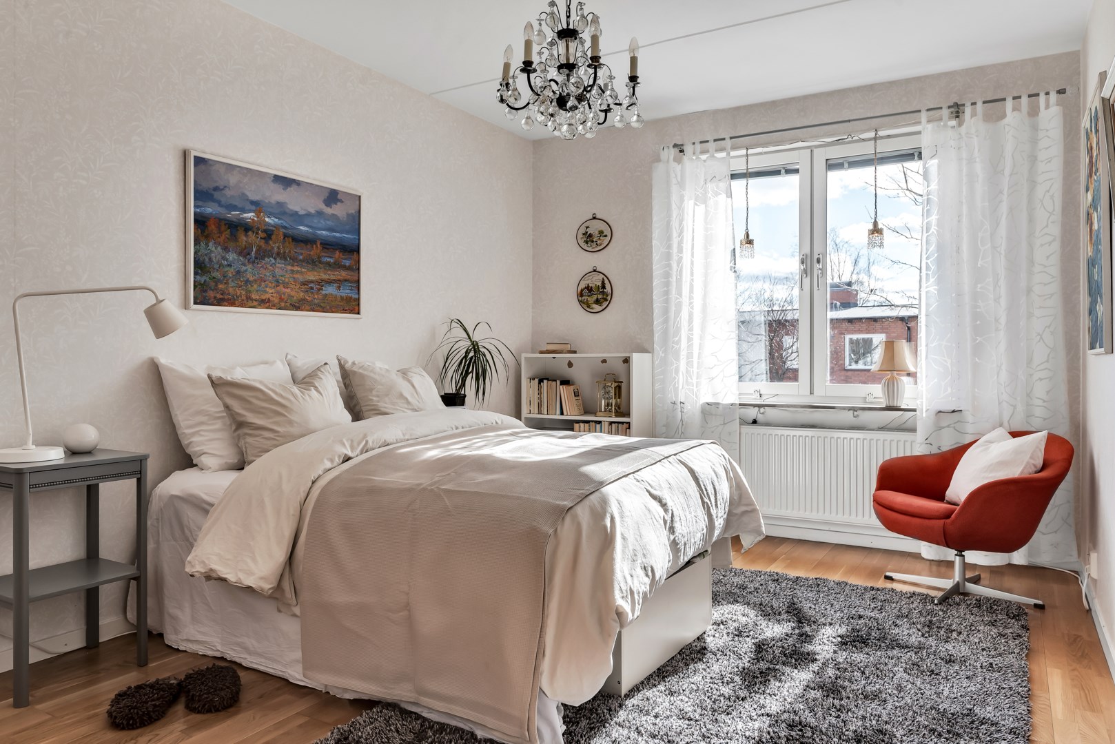 Planlösningen är genomtänkt och förvaringsmöjligheterna är många och stora. Hjärtat i lägenheten är köket, matrummet och det stora vardagsrummet, som gjort för vänner och familj, här finns utrymme för många att umgås. De ljusa rummen ger ett öppet och luftigt intryck och ger möjlighet att inreda efter egen smak. Idag är sovrummen två, möjlighet finns till ett tredje genom att använda matrummet. Lägenheten har två helkalkade badrum det ena med klädvård i form av tvättmaskin och torktumlare.