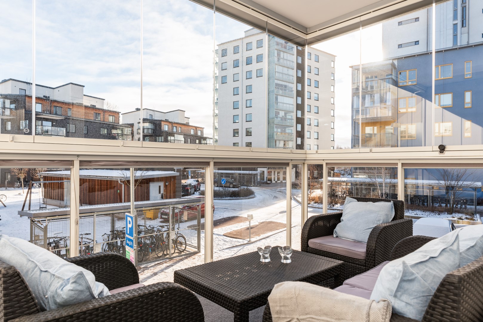 Läget är oslagbart med ICA Ettan och busshållplatsen precis intill, vilket gör vardagen smidig. Närhet till grönområden, city och goda kommunikationer gör detta till en bostad att trivas i.