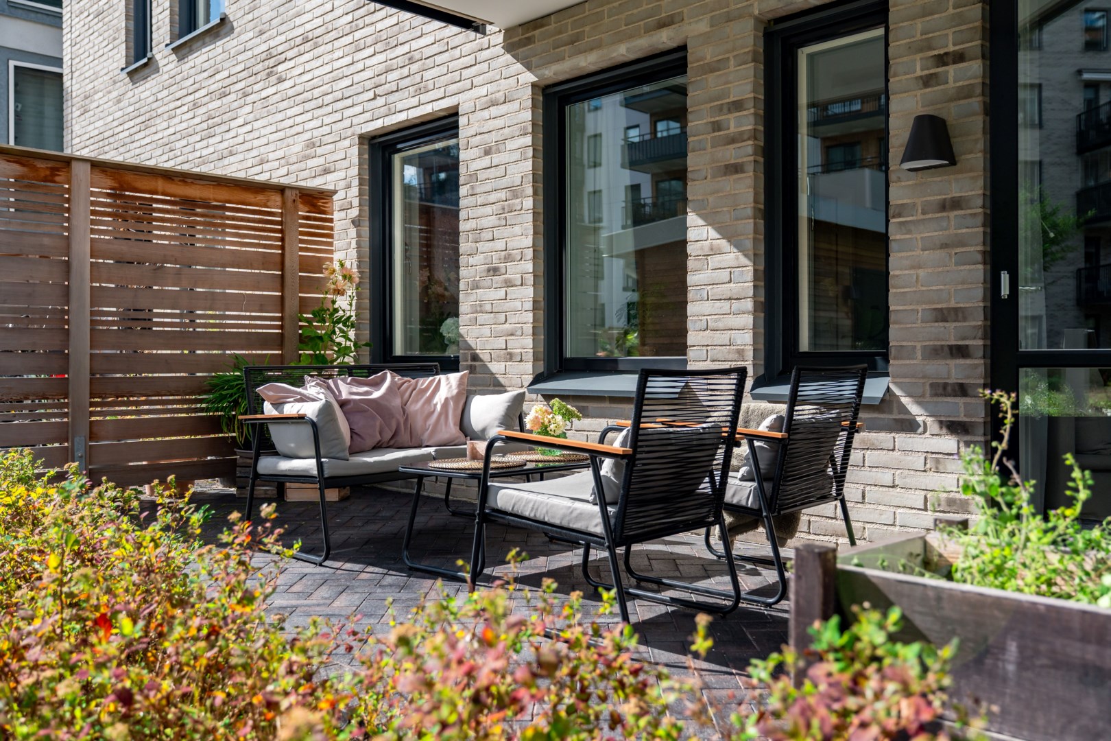 Föreningens innergård är en grön oas med sittplatser under pergola och fina planteringar. I källaren finns cykelrum, samt garage med hiss direkt upp till bostadsplanet.