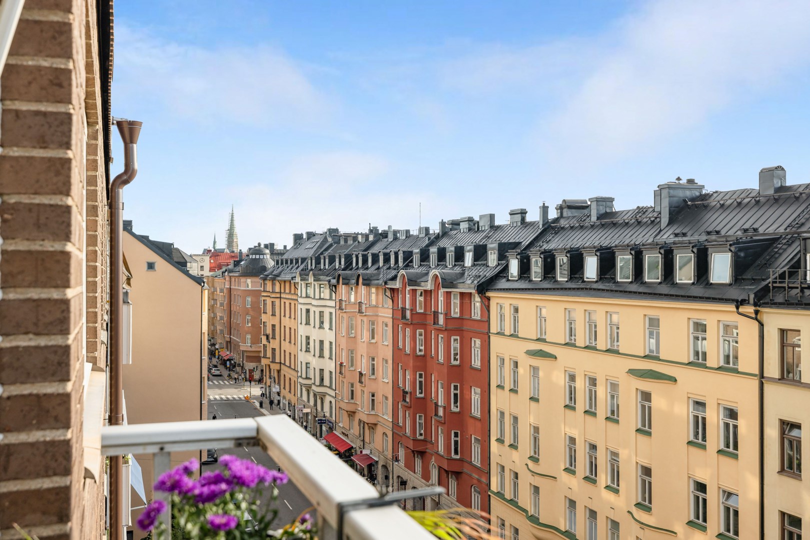 Presenterar en väldisponerad trea (möjlig fyra) med ett högt läge och balkong i ett soligt västerläge. Bostaden är i genomgående fint skick med stilrena materialval och smakfull färgsättning. Stora fönsterpartier i två väderstreck tillsammans med det höga läget på 7:e våningen skänker ett härligt ljusinsläpp till bostaden. Utmärkt planlösning med goda sällskapsytor och balkong i soligt västerläge med fin utsikt över grannhusens takåsar. Generöst vardagsrum som skapar goda ytor för umgänge och samvaro. Välplanerat kök i en stilsäker interiör med full maskinell utrustning och fin plats för matbord intill fönster. Möjlighet att dela av köket för ett extra sovrum, se alternativ planlösning. Två sovrum i bra storlek med lugnt gårdsläge. Helkaklat badrum utrustat med tvättmaskin för er bekvämlighet och separat gäst-wc. Välskött förening med låga avgifter, låg skuldsättning och som dessutom äger marken. För medlemmarna finns garage, tvättstuga, cykelrum och barnvagnsrum. Grönskande gård med utemöbler, grill, samt rutschkana och sandlåda för barnen. Här bor du i ett mycket attraktivt område i Vasastan med närhet till förskolor, skolor, grönområden, trevliga restauranger, butiker och goda kommunikationer.