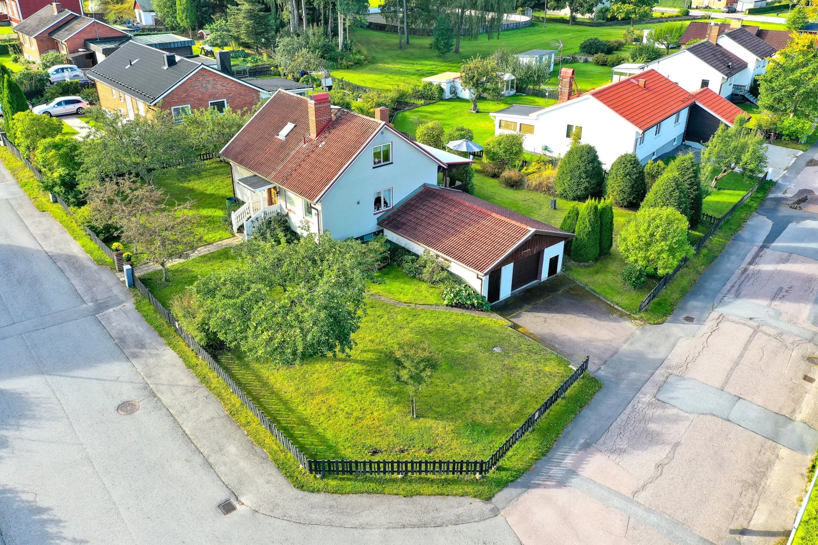 Planlösningen ger er: Välkomnande entré/hall, kök med stor matplats, rymligt vardagsrum med utgång till altan och trädgård, två sovrum och badrum med badkar. Övervåningen har två rymliga sovrum, klädkammare och wc med handfat. Källaren erbjuder tvättstuga, pannrum med bergvärme anläggning och vidare passade till det utbyggda garaget med tillhörande snickarverkstad och förråd.
