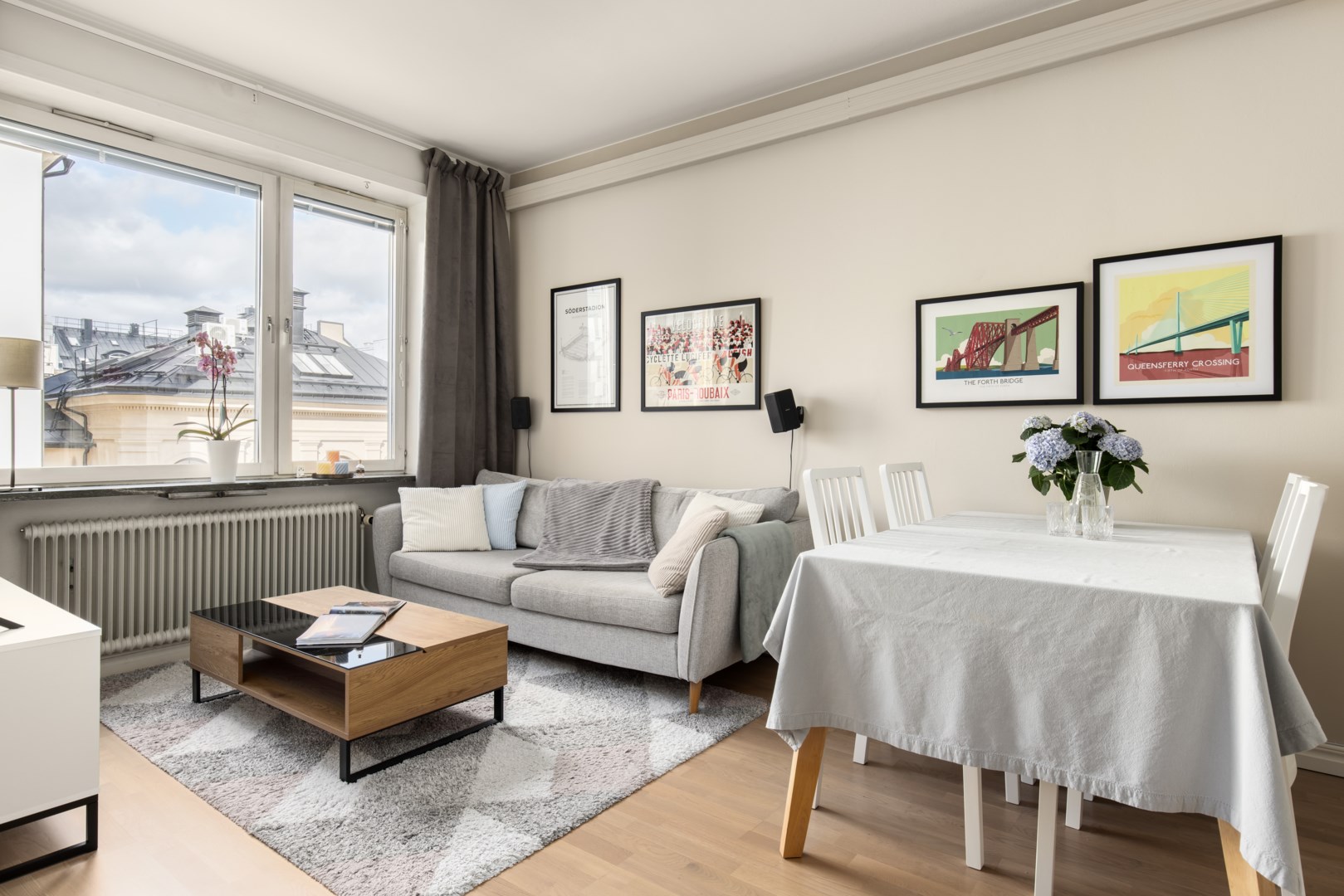 Välkommen till en trivsam och smart planerad 2:a med insynsskyddat läge mot innergård på central adress. Här bor du i en lägenhet i bra skick, där samtliga fönster vetter mot den lugna innergården. Sovrummet erbjuder plats för en större säng och köket är välutrustat med diskmaskin och integrerade vitvaror och har en öppen, social planlösning mot vardagsrummet. I hallen finns dubbla inbyggda spegelgarderober som erbjuder utmärkt förvaring. Till lägenheten disponeras ett vindsförråd.