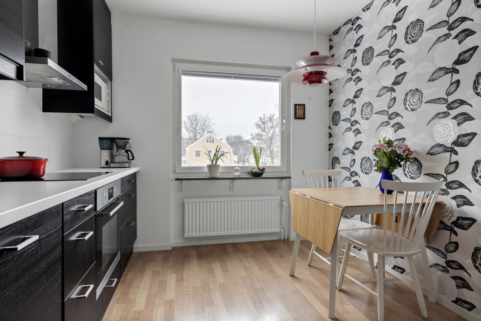 Välkommen till en ljus och rymlig gaveltvåa med fönster i tre väderstreck som skapar ett fantastiskt ljusinsläpp och en härlig rymd. Lägenheten har en genomtänkt planlösning med generösa rum och en hemtrevlig känsla. Vardagsrummet är luftigt med plats för både soffgrupp och matplats samt utgång till en solig balkong i sydvästläge. Köket erbjuder goda arbetsytor, gott om förvaring och plats för matbord, medan sovrummet är rogivande med stora, inbyggda garderober. Det helkaklade badrummet renoverades i samband med föreningens stamrenovering 2014/15 och är utrustat med dusch, golvvärme och handdukstork. Två förråd i källaren tillhör lägenheten.