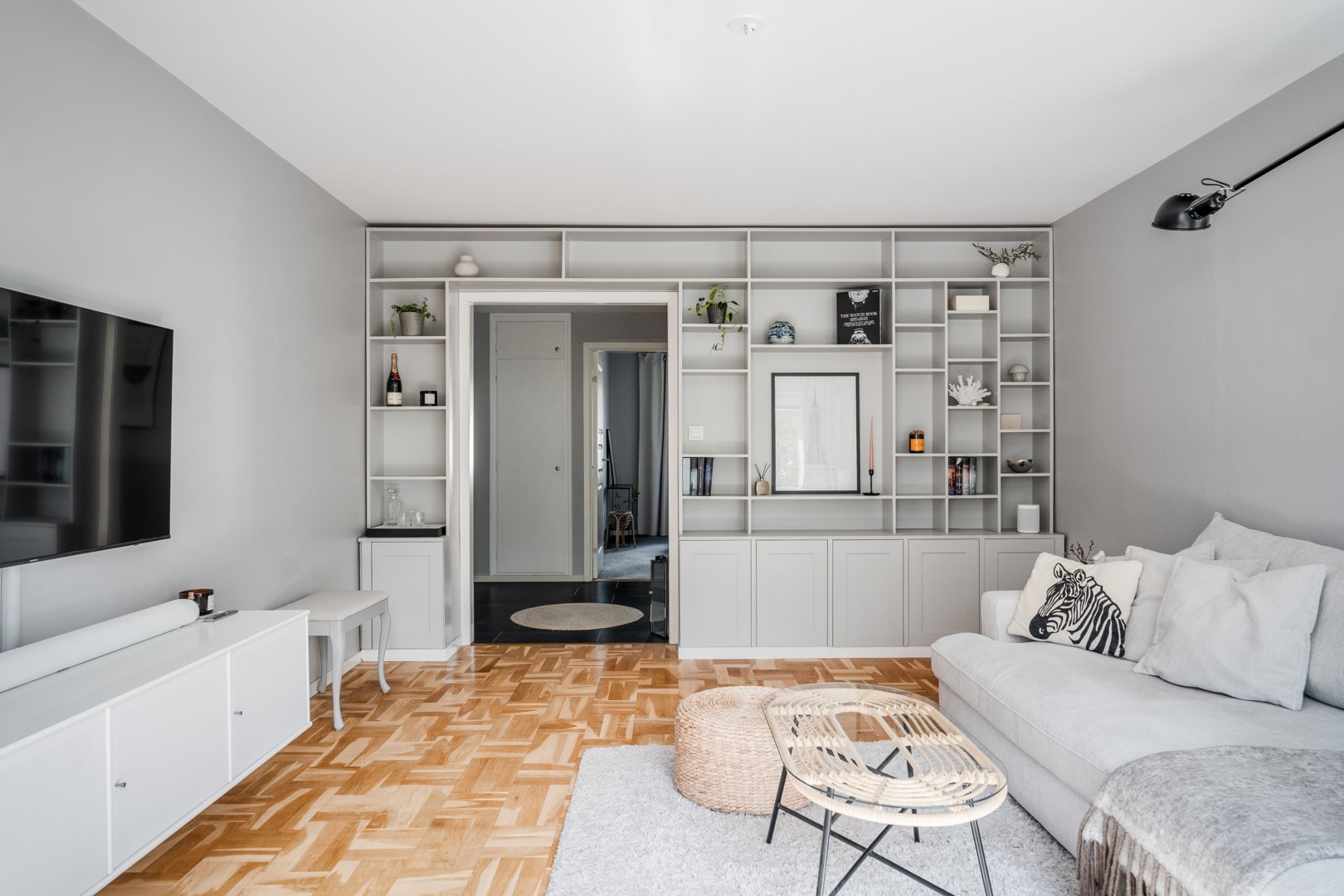 Välkommen till denna smakfulla och rymliga bostad, där vardagsrummet med genomgående parkett och gott om plats för större matbord samt soffgrupp erbjuder en inbjudande atmosfär för både vardag och fest. Här finns även platsbyggd förvaring längs ena väggen. Ljusa och fräscha ytskikt med gråa väggar skapar en harmonisk och elegant känsla i hela lägenheten. Stora fönsterpartier och generöst ljusinsläpp i både kök och vardagsrum gör denna bostad till en härlig plats att spendera tid i. Lägenheten är genomgående i fint skick och har renoverats under 2021 med smakfull färgsättning.