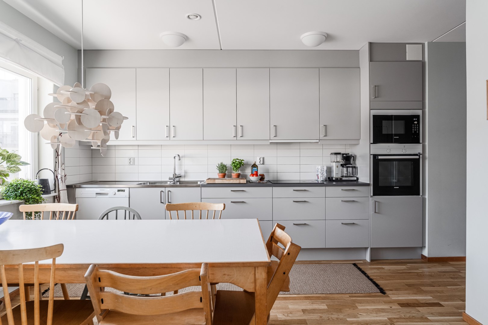 Högt upp i huset finner du denna trevliga och välplanerade 4:a med stor balkong som vetter in mot föreningens innergård! Planlösningen fördelar sig på hall med plats för avhängning för ytterkläder. Kök och vardagsrum i halvöppen planlösning som ger ett luftigt intryck och som har plats för en större matgrupp i köket intill fönstret. Köket har ljusgråa köksluckor som ger ett stilrent intryck med gott om arbetsyta. Fullt utrustat kök med hel kyl och frys, diskmaskin, inbyggd ugn och mikrovågsugn samt induktionshäll. Vidare finns tre sovrum samt ett helkaklat badrum utrustat med både tvättmaskin och torktumlare! I övrigt har lägenheten har genomgående fina ytskikt med smakfulla färgval! Perfekt lägenhet för dig som söker ett modernt och bekvämt boende!