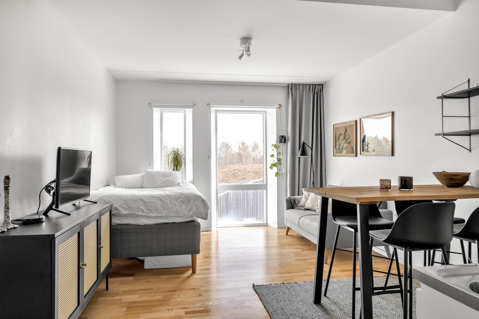 Välkommen till denna välplanerade 1:a näst högst upp i huset med trevlig utsikt och extra högt i tak. Här bor du med ett insynsskyddat läge i BRF Smaragden. Fastigheten är uppförd 2015 och ritad av danska arkitektkontoret Christensen & Co’s arkitekter. I föreningen finns cykelförråd, bilgarage, 2 stycken padelbanor och en trevlig terrass på plan 1. Lägenheten ligger på våning 4/6 och har en ljus och tilltalande planlösning fördelat på hall med utrymme för avhängning samt gott om förvaring i form av flertalet garderober. Köket finner du i anslutning till rummet som har plats för både matbord, säng och soffa. Det helkaklade badrummet är rymligt och välutrustat med bland annat tvättmaskin och torktumlare. Till lägenheten hör även ett förråd om ca 1kvm. Rosendal är en utmärkt utgångspunkt för det mesta Uppsala har att erbjuda. På bara några minuter tar du dig till Akademiska sjukhuset, Ultuna, SLU, BMC och Ångströmslaboratoriet samt till flertalet institutioner på universitetet. I området hittar du även ICA Nära Rosendal och USIF-arena. Stadsskogen har du runt knuten, perfekt för dig som gillar att ta mysiga promenader eller att löpträna.