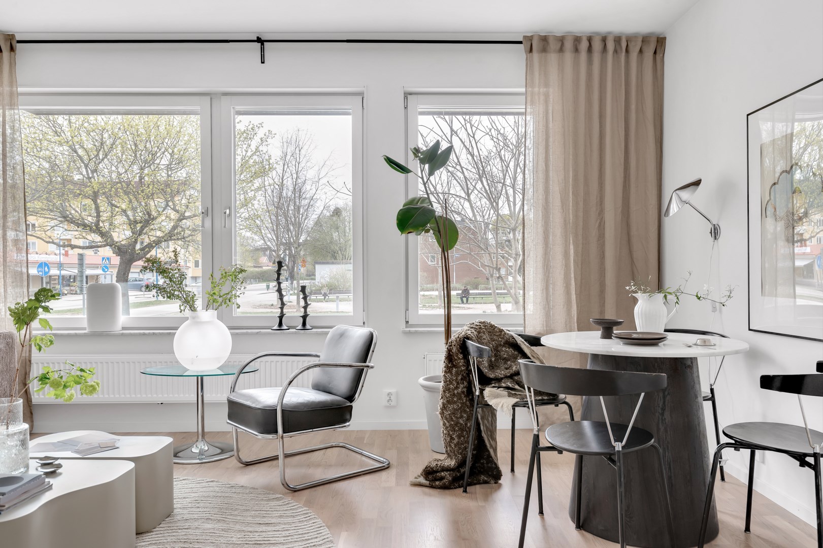 Välkommen till en modern och yteffektiv tvårummare med egen entré och uteplats mot lugn innergård – perfekt för härliga stunder utomhus under årets varmare månader. Öppen planlösning mellan kök och vardagsrum skapar en social och inbjudande yta med plats för både vardag och fest. Genomgående parkettgolv, målade väggar och ett stilrent kök med gott om förvaring i skåpluckor och full maskinell utrustning höjer helhetskänslan.