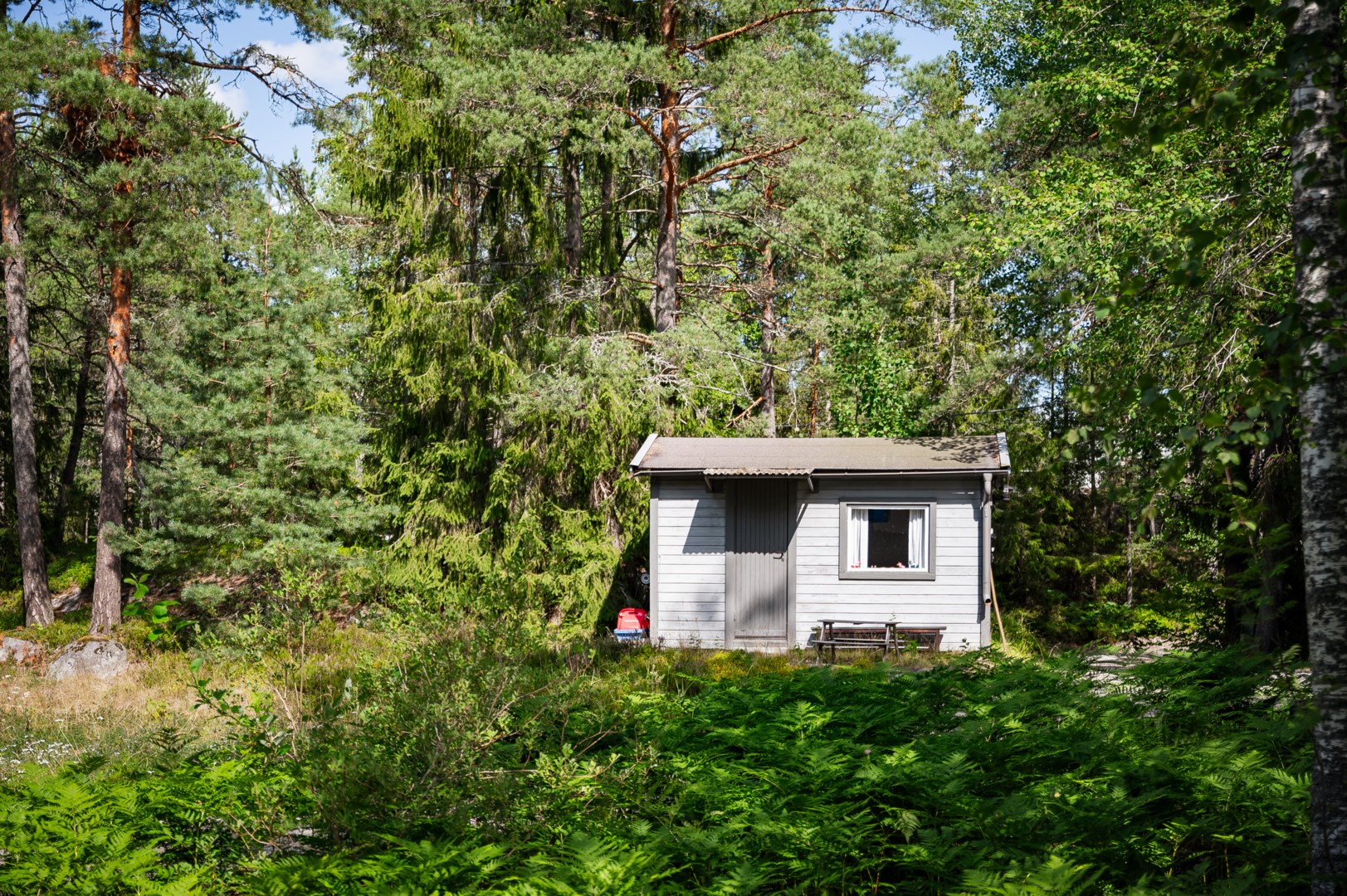 Huvudbyggnaden har ett modernt kök med öppen planlösning mot matplatsen – en social yta med plats för både vardagsliv och festliga middagar med en slående sjöutsikt öven Vidsjön. Sovrummet rymmer en dubbelsäng och sittgrupp vid fönstret. Njut av utsikten även från detta rum. Att vakna till en sådan vy är få förunnat! Öppen spis med kassett värmer gott under kyliga kvällar. Separat sällskapsrum med fönster i flera väderstreck och även här åtnjuts utsikt över Vidsjöns glittrande spegel. Rymligt helkaklat badrum med dusch , tvättpelare och wc. Den stora altanen ligger i högt läge med vacker utsikt och generösa ytor för utemöbler och avkoppling.