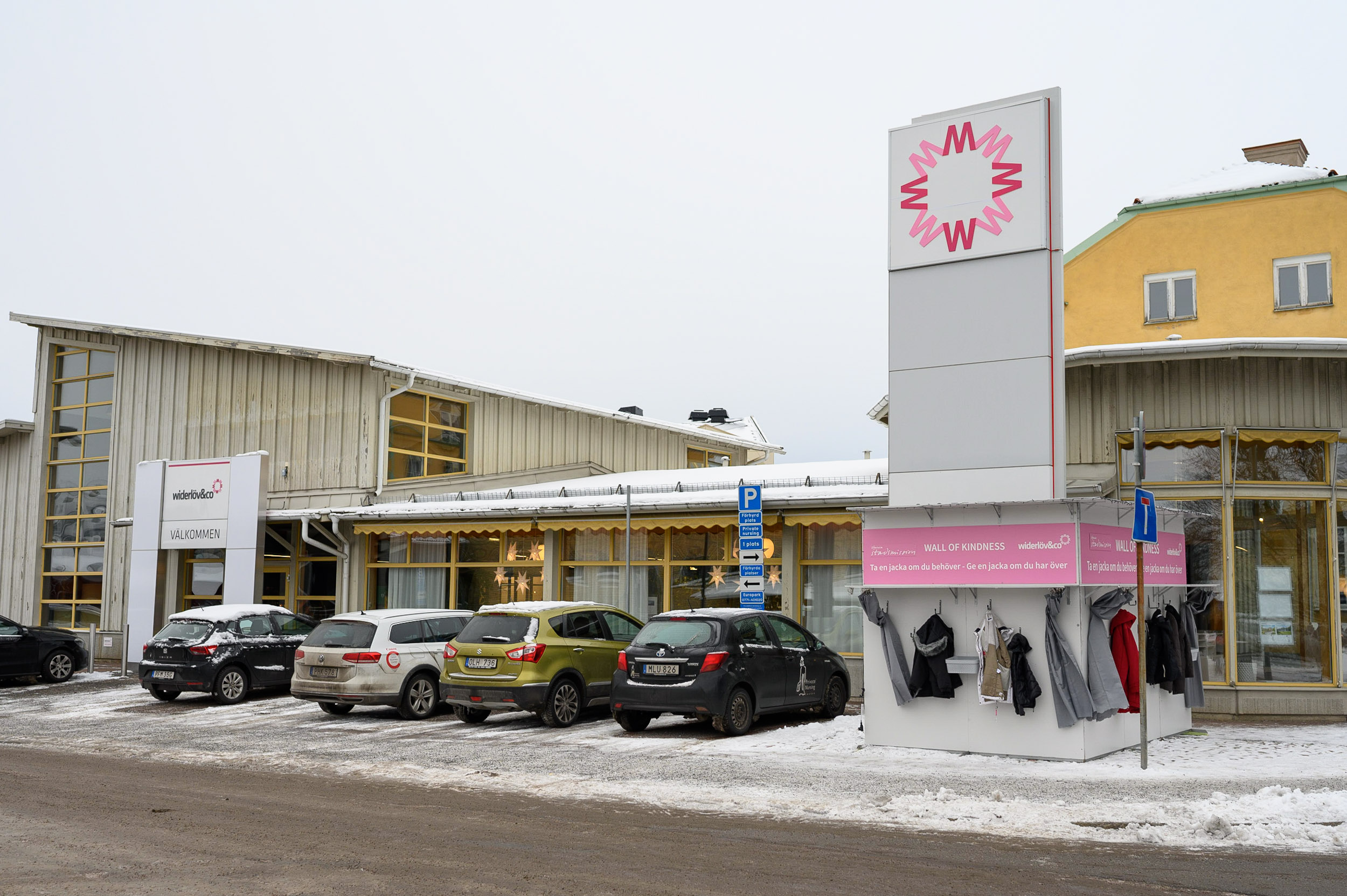 2018 satte vi för första gången upp väggar med krokar utanför våra kontor, där alla som ville kunde lämna varma vinterkläder de inte längre behövde. Stadsmissionen, som har kontakt med väldigt många hemlösa och andra behövande, hjälpte oss sedan att sprida budskapet att här fanns det varma kläder att hämta.